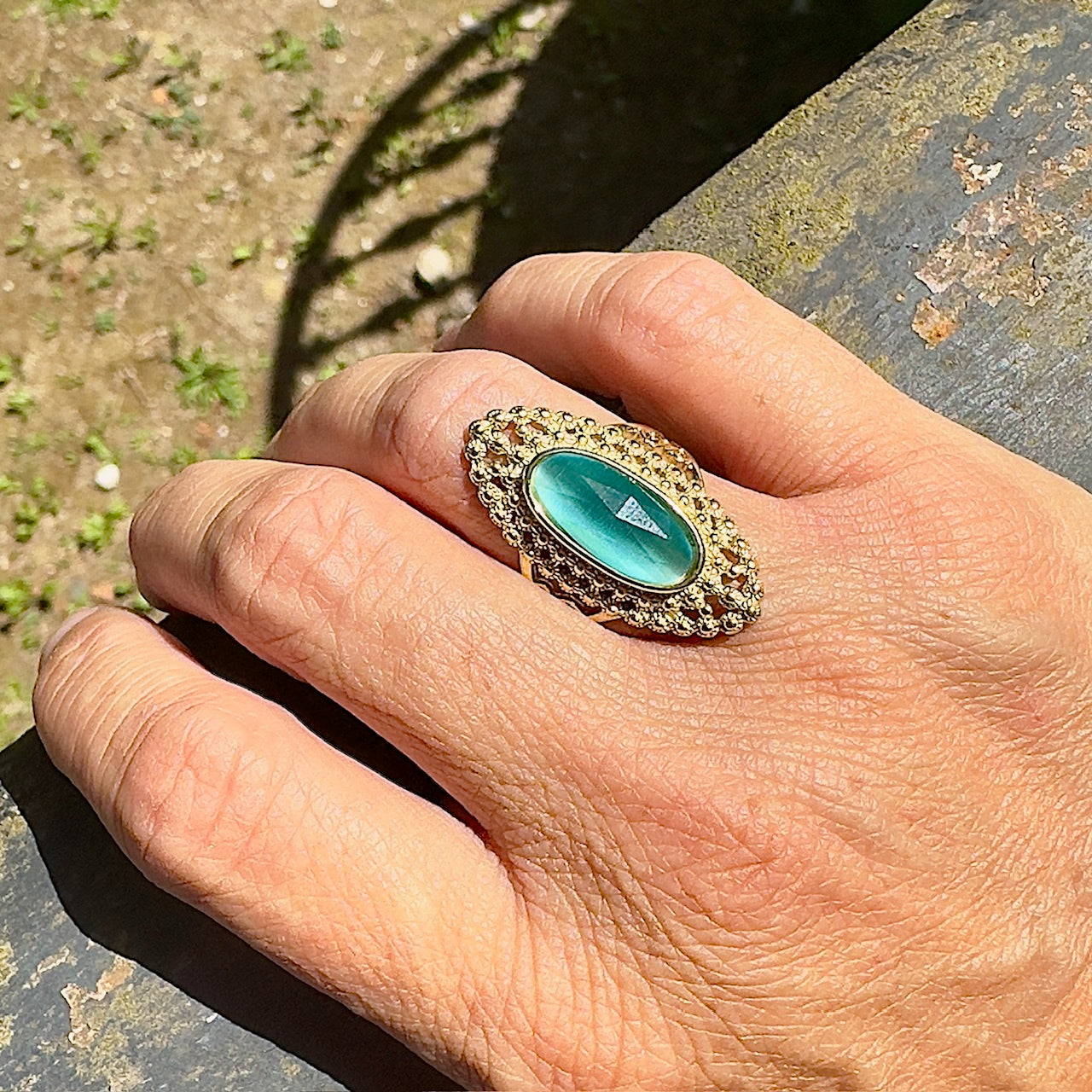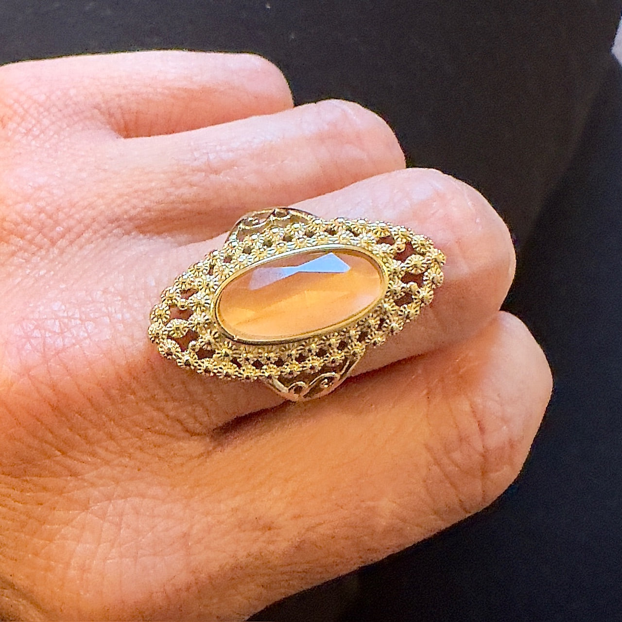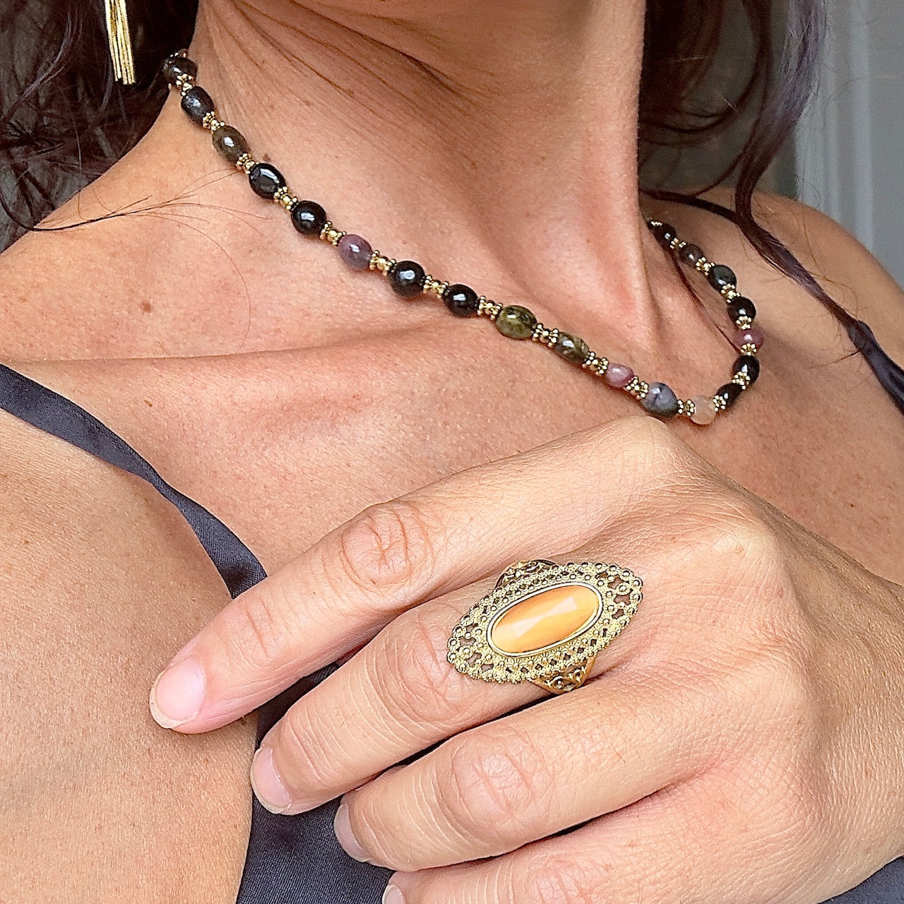 Thyssia: Cette sublime bague avec sa pierre orange en œil de chat est parfaite pour mettre en valeur votre main. Elle ne laissera personne indifférente.