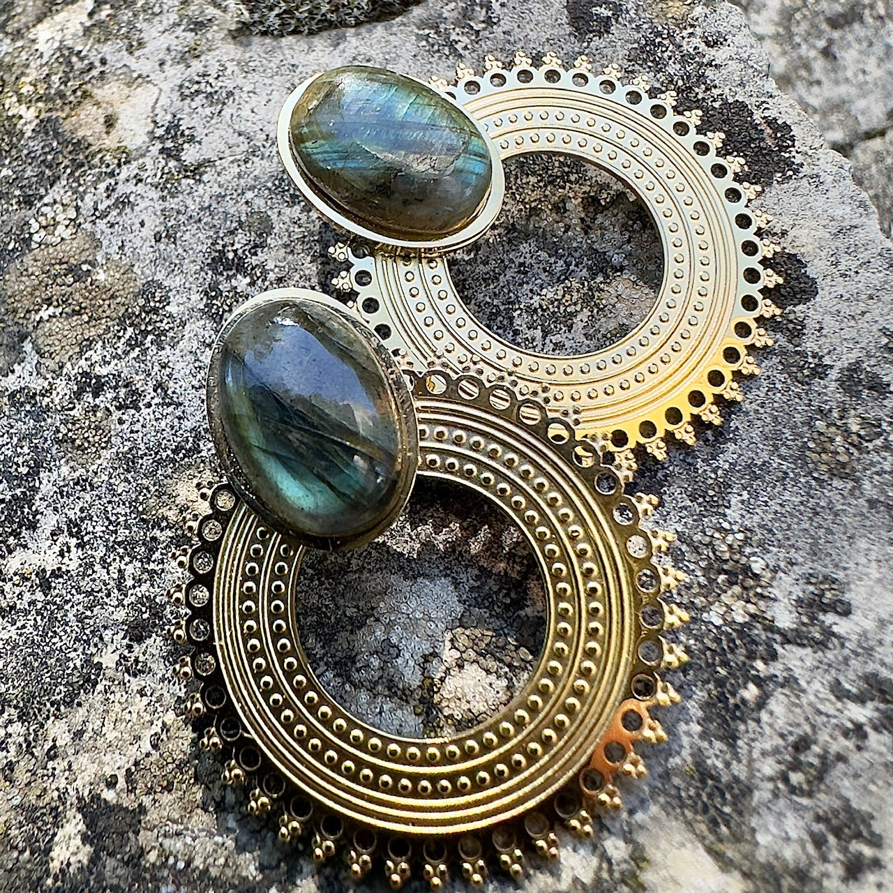 Amia: Sublimez vos tenues avec ces magnifiques boucles d'oreilles bohème chic. Ornées d'une magnifique pierre vous avez le choix entre trois modèles: améthyste / labradorite et rhodonite.