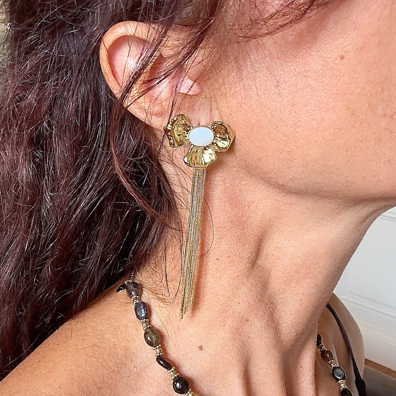 Solia: Vous recherchez de l’élégance ainsi que de la féminité, ces boucles d'oreilles. serons parfaites pour sublimer vos tenues. La perle de nacre apporte de la douceur ainsi que du romantisme.